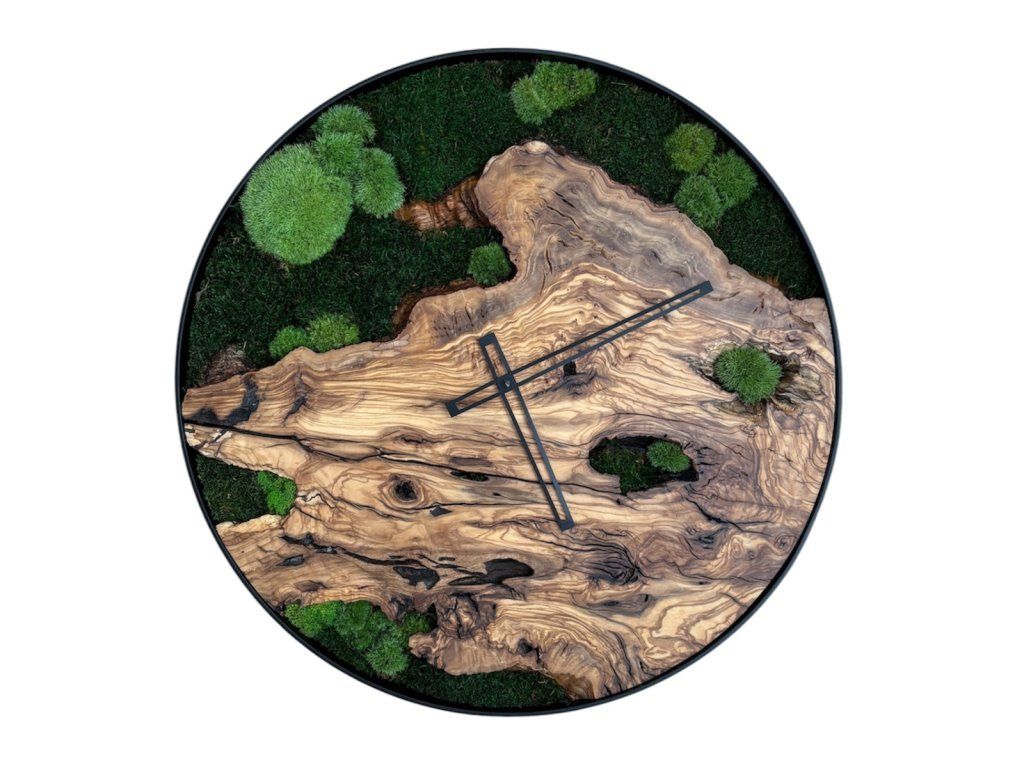- Ekologie: Mech použitý v hodinách je 100 % přírodní. Pro jeho barvení a upevnění se používají ekologické směsi, bez rizika pro zdraví.