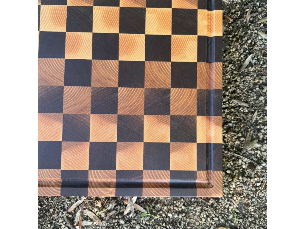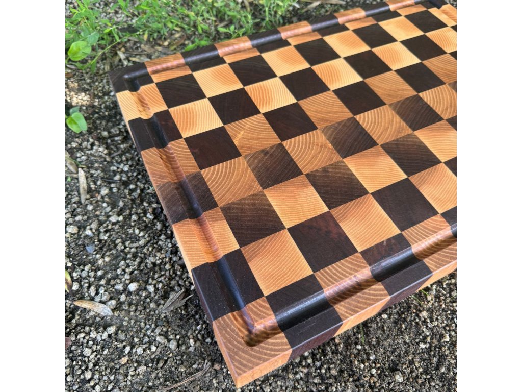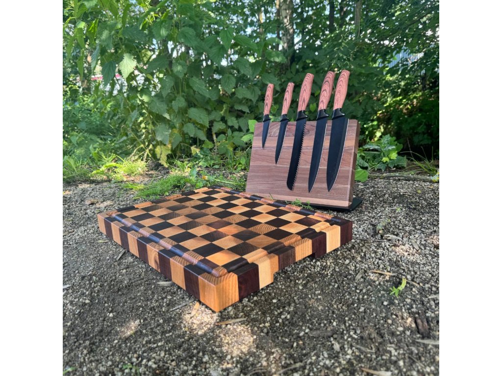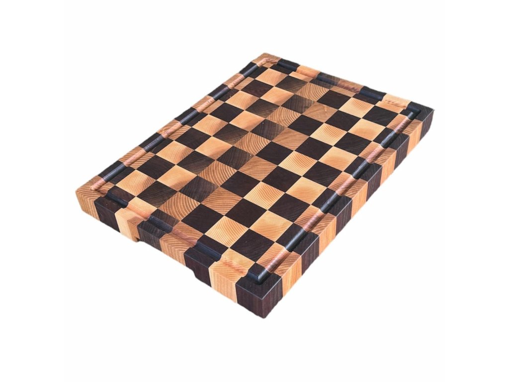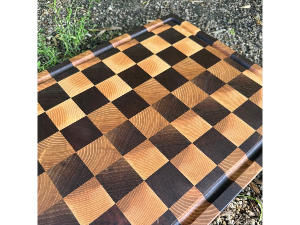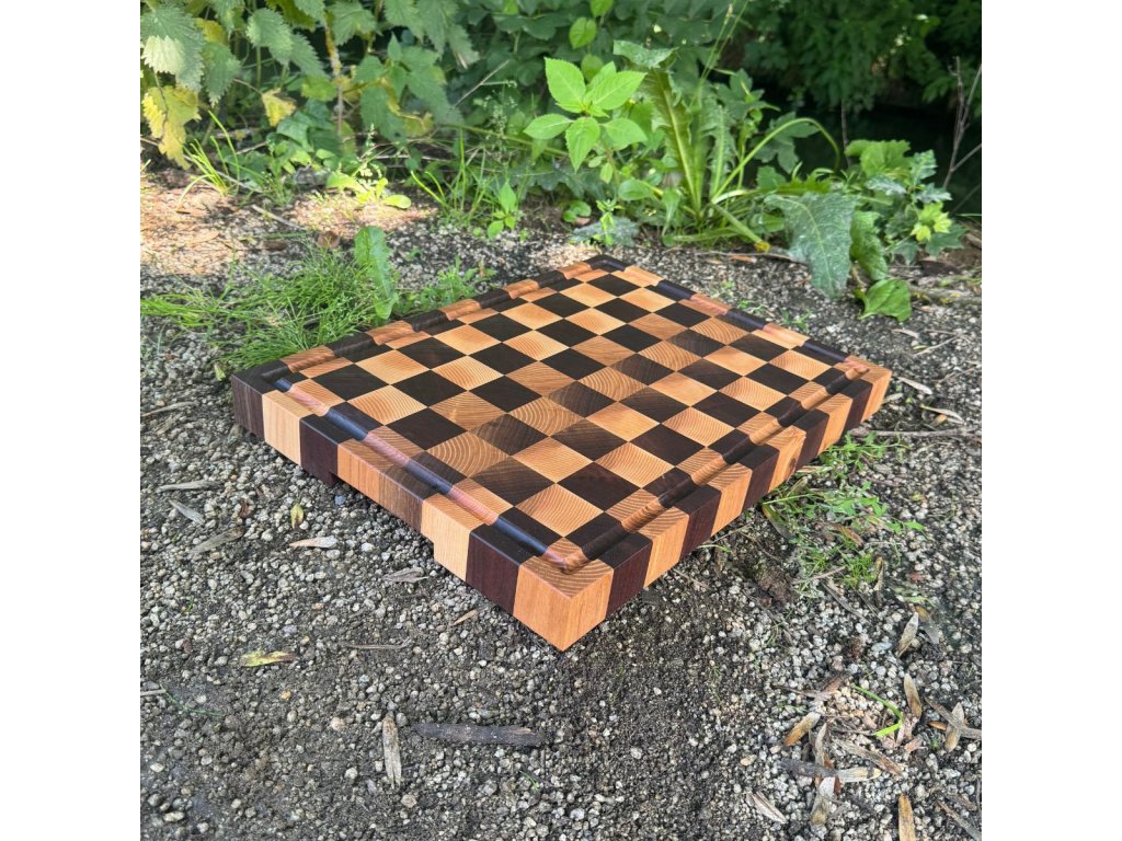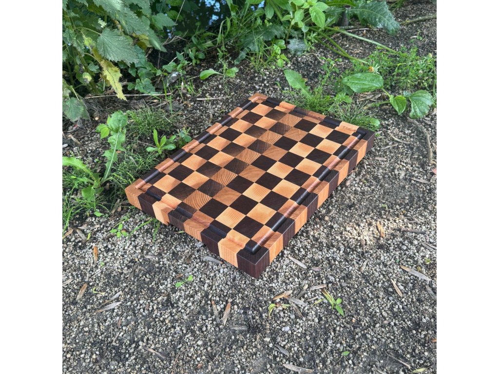 Krájecí prkénko z masivního jasanu a černého ořechu s motivem šachovnice je nejen praktickým, ale také estetickým doplňkem do každé kuchyně. Kombinace těchto dvou druhů dřeva vytváří kontrastní a vizuálně atraktivní vzor.