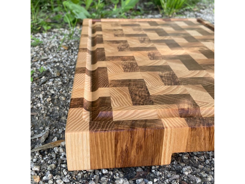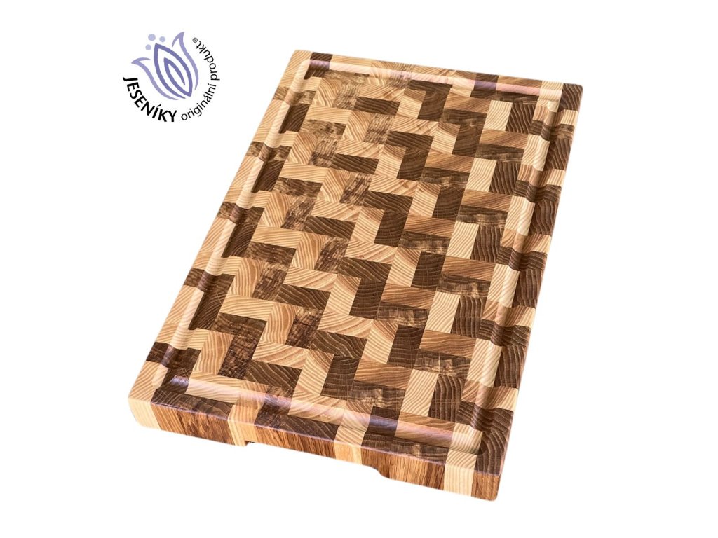 Kombinace dubu a jasanu vytváří elegantní a vizuálně přitažlivý kontrast, který může dodat vaší kuchyni sofistikovaný vzhled. Každé prkénko je jedinečné díky přirozeným vzorům a barvám obou druhů dřeva, což znamená, že budete mít skutečně originální kousek.