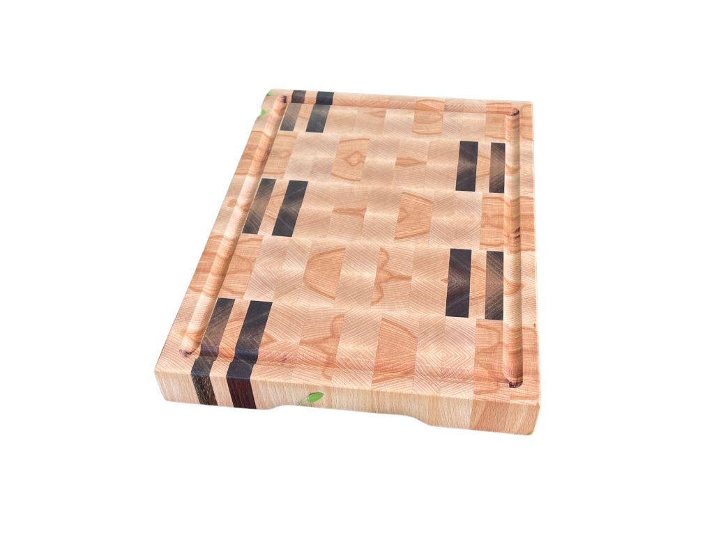 Kombinace buku a ořechu vytváří elegantní a vizuálně přitažlivý kontrast, který může dodat vaší kuchyni sofistikovaný vzhled. Každé prkénko je jedinečné díky přirozeným vzorům a barvám obou druhů dřeva, což znamená, že budete mít skutečně originální kousek.